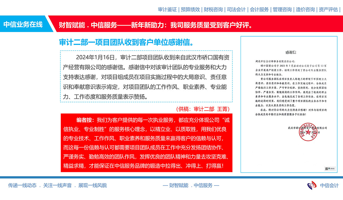 03/152024審計(jì)二部一項(xiàng)目團(tuán)隊(duì)收到客戶(hù)單位感謝信