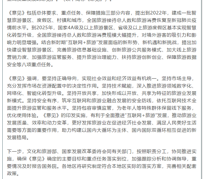 深度解讀國家《關(guān)于深化“互聯(lián)網(wǎng)+旅游”?推動旅游業(yè)高質(zhì)量發(fā)展的意見》